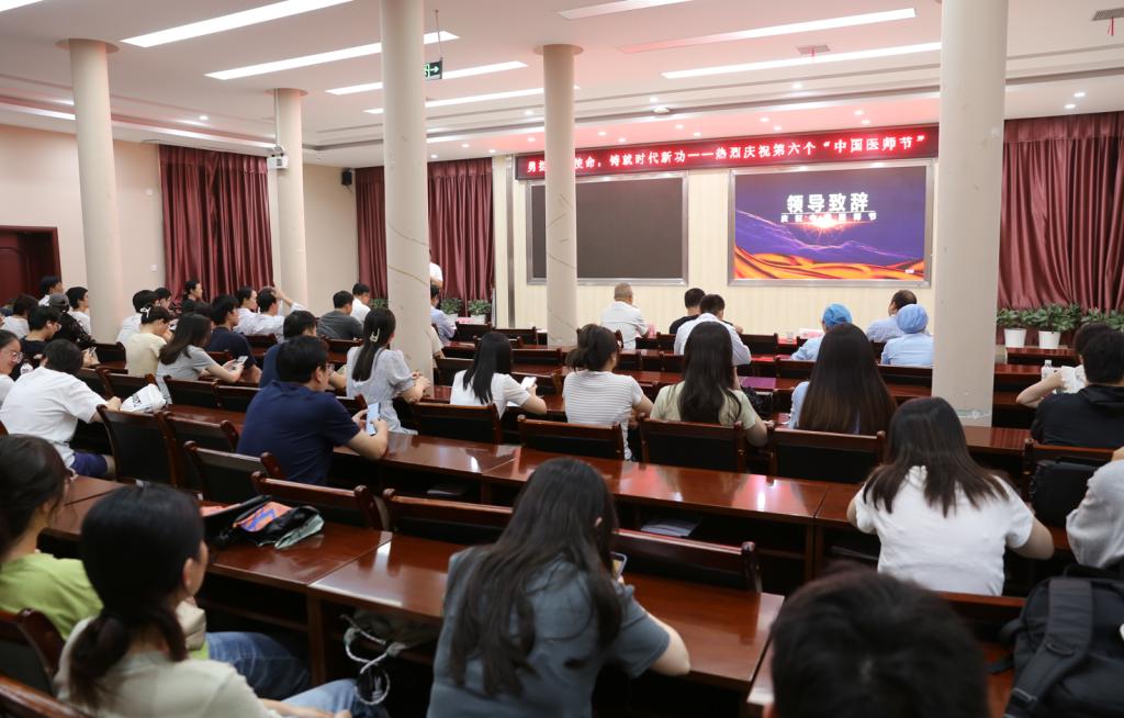 院党委书记邓超纲代表院党政班子向全院医师表达节日问候,充分肯定了全院医务工作者推进健康中国建设、保障人民健康的使命担当,希望大家提高政治站位,坚持以习近平新时代中国特色社会主义思想为指导,心怀“国之大者”,把个人的理想追求融入党和国家的卫生健康事业之中;继续努力奋斗,以更加饱满的热情投身工作;建设廉洁医院,用实际行动守护好职业荣光。