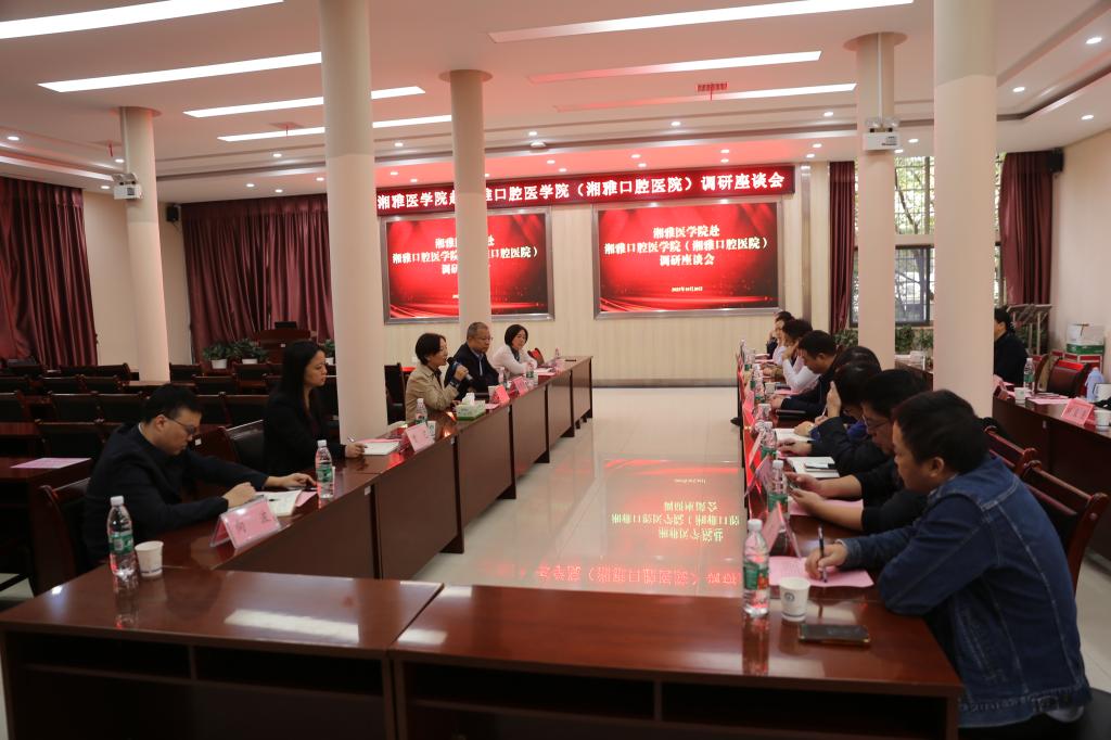 10月20日上午,湘雅医学院领导武明花、吴世明、曾艺、周智君、向波一行来到湘雅口腔医学院(湘雅口腔医院)调研,与院领导班子和湘雅医院、湘雅二医院、湘雅三医院口腔医学中心/口腔科负责人等召开调研座谈会,共话口腔医学事业发展。