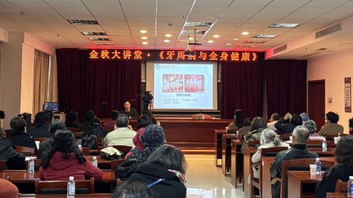 为深入贯彻落实党的二十大精神,坚持以人民为中心的发展思想,发扬尊老敬老的传统美德,增强老年人口腔保健意识,12月15日,我院医疗团队走进省老干部活动中心,在省老干部局主办的“金秋大讲堂”开展《牙周病与全身健康》为主题的健康宣教,并为现场老同志义诊。