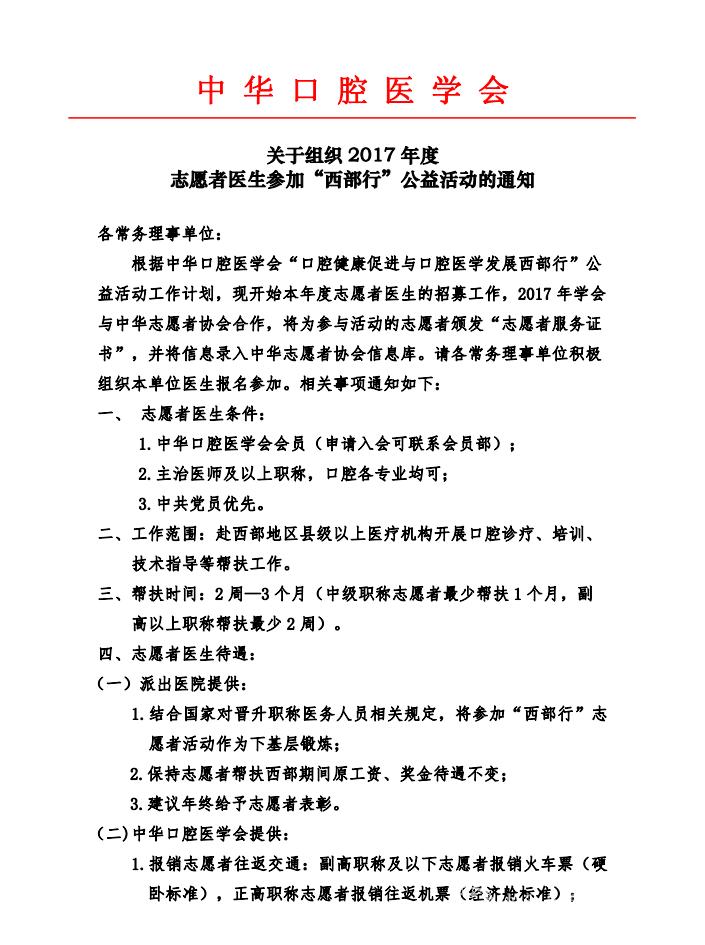 关于组织2017年度志愿者医生参加“西部行”公益活动的通知