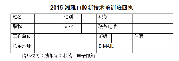 由yl6809永利湘雅口腔医院主办的国家级继续教育项目《显微根管治疗和牙体牙髓一体化治疗新技术培训班》学习班将于2015年4月25日-26日在长沙举办。