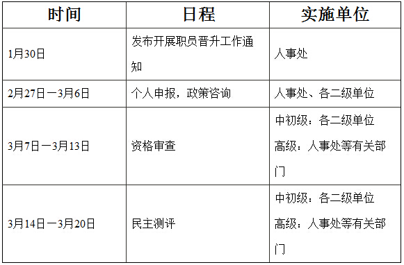 中初级职员:二级单位组织测评,测评结果经院(部、处)务会通过后,报学校聘任工作办公室。