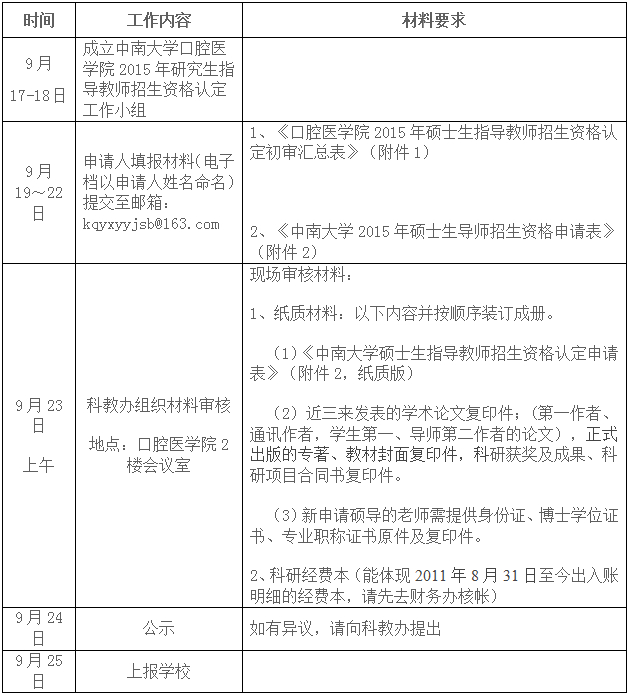 口腔医学院关于开展2015年硕士生指导教师招生资格认定工作的通知