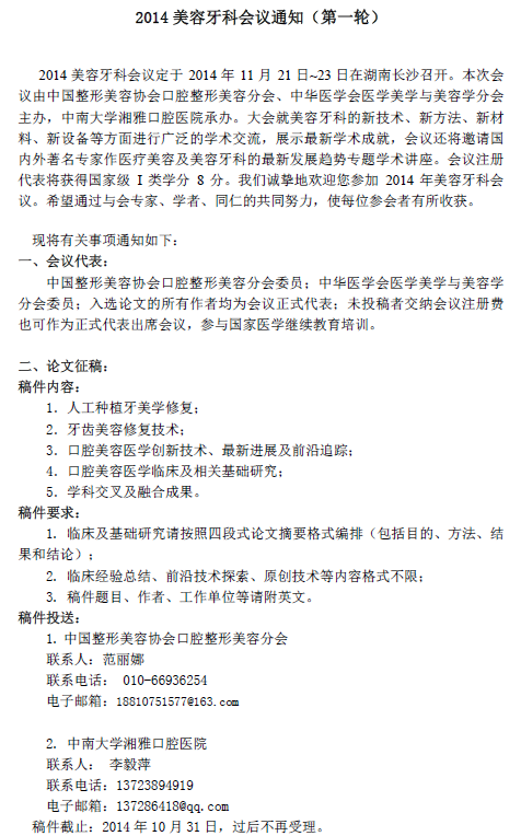 2014美容牙科会议通知(第一轮)
