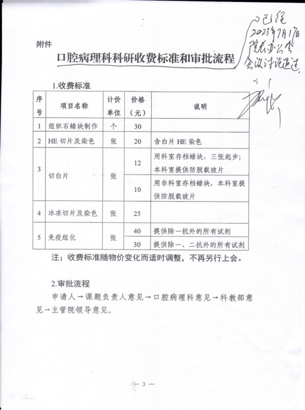 附件:《口腔病理科科研收费标准和审批流程》