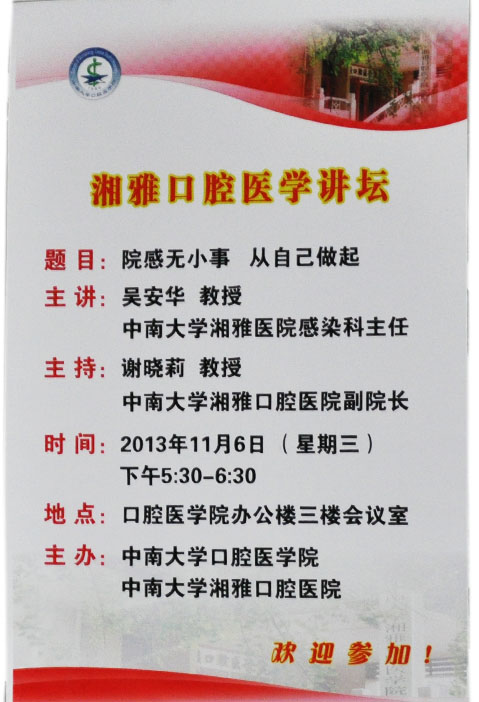 湘雅口腔医学讲坛--院感无小事 从自已做起