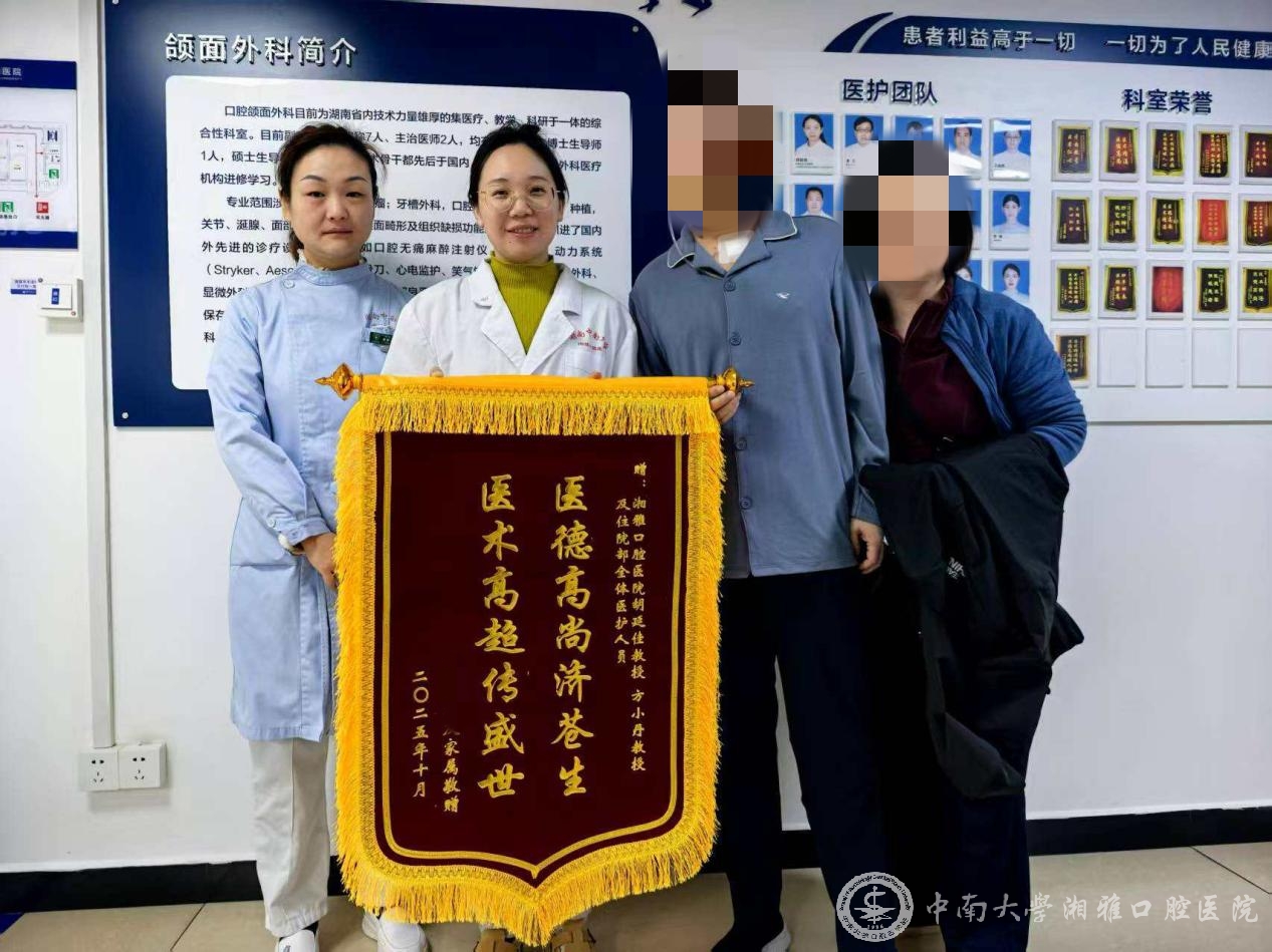 湘雅口腔医院颌面外科的荣誉墙上,新添的三面锦旗在“党风廉政宣传教育月”的展板旁格外醒目——每一面鲜红绒布上的烫金大字,都裹着一段关于“廉洁行医”的温暖故事。