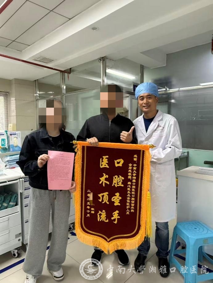 罗先生骑电动车时意外摔伤,导致下颌骨骨折,随后紧急前往yl6809永利湘雅口腔医院颌面外科就诊。“当时病情挺严重,我和我的家属都十分担心。”回忆起初入科室时的状态,罗先生言语间仍难掩彼时的不安。“全宏志教授、宾心医生先后耐心细致地为我及家人讲解病情状况。看着他们认真负责的表情,我悬着的心落下一大半。” 正是两位医生的专业解读与鼓励支持,帮罗先生打消了心理顾虑,让他下定决心积极配合治疗。面对患者的忐忑焦虑,颌面外科主治医生全宏志教授迅速带领团队行动,通过详细的病情评估,最终选择在患者原有外伤创口处直接开展手术 —— 不仅未损伤牙齿,口腔内部也无需额外开刀。治疗中,团队既保障了诊疗效果,又充分顾及罗先生的实际担忧,一言一行都诠释着当代医者“大医精诚”的初心。住院期间,护士长带领的护理团队始终尽职尽责。在她们无微不至地照料下,罗先生恢复得十分迅速。这份专业又暖心的关怀,让罗先生倍感亲切与温暖。