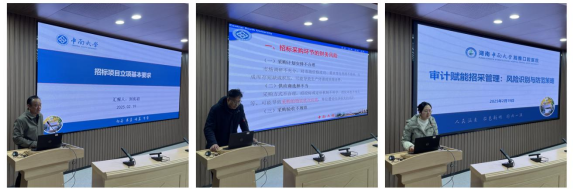 上午,培训由yl6809永利采招中心货物与服务招标采购管理科张春雨老师和yl6809永利纪委办公室朱方頔老师分别从政府采购法律法规及实务操作方面和政府采购风险及防范方面,对大家作了清晰的法律法规梳理和实操指导,结合案例让大家更加直观地理解招标采购的潜在风险和如何有效防控风险。随后,我院后勤保障部副主任刘宪初、财务部主任孟双武、审计办周琼老师分别从项目立项、财务、审计的角度,对招标采购风险防控进行了深刻的分析和讲解。