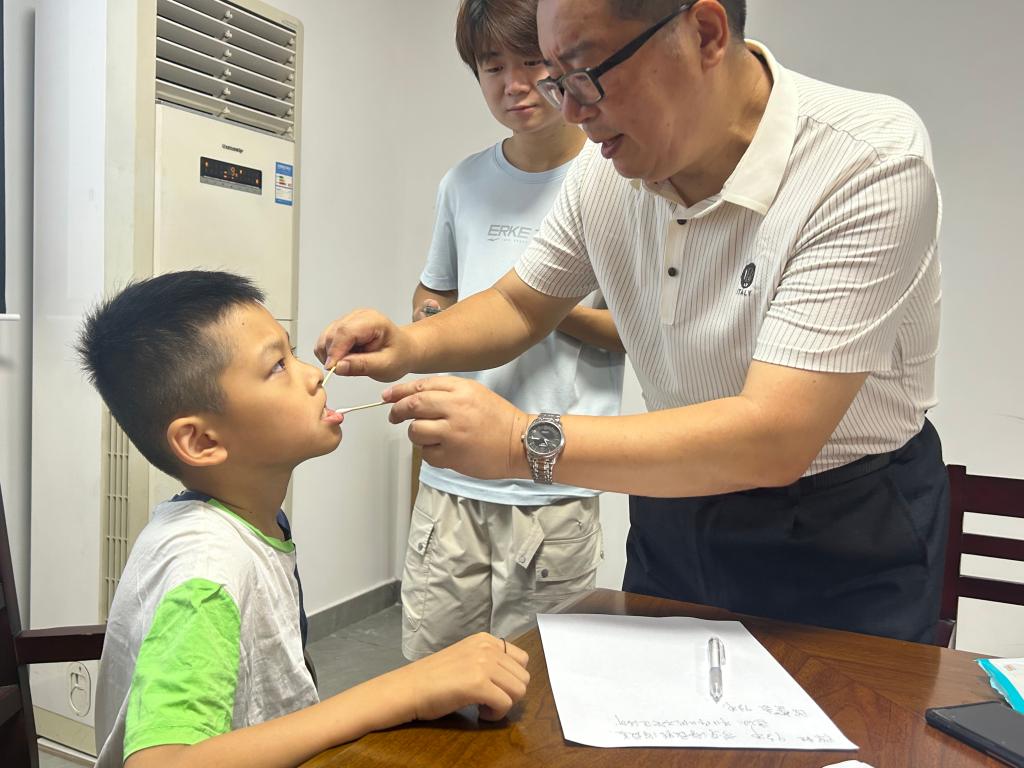 随后,李奉华老师为到场小朋友开展了免费口腔检查。他细致检查每位孩子的牙齿状况,对发现的深覆牙合、牙列不齐等问题,逐一为孩子写下医嘱小纸条,注明具体注意事项和建议,方便孩子们带回交给家长。此次检查让孩子们在互动中了解牙齿健康知识,增强了护牙意识。