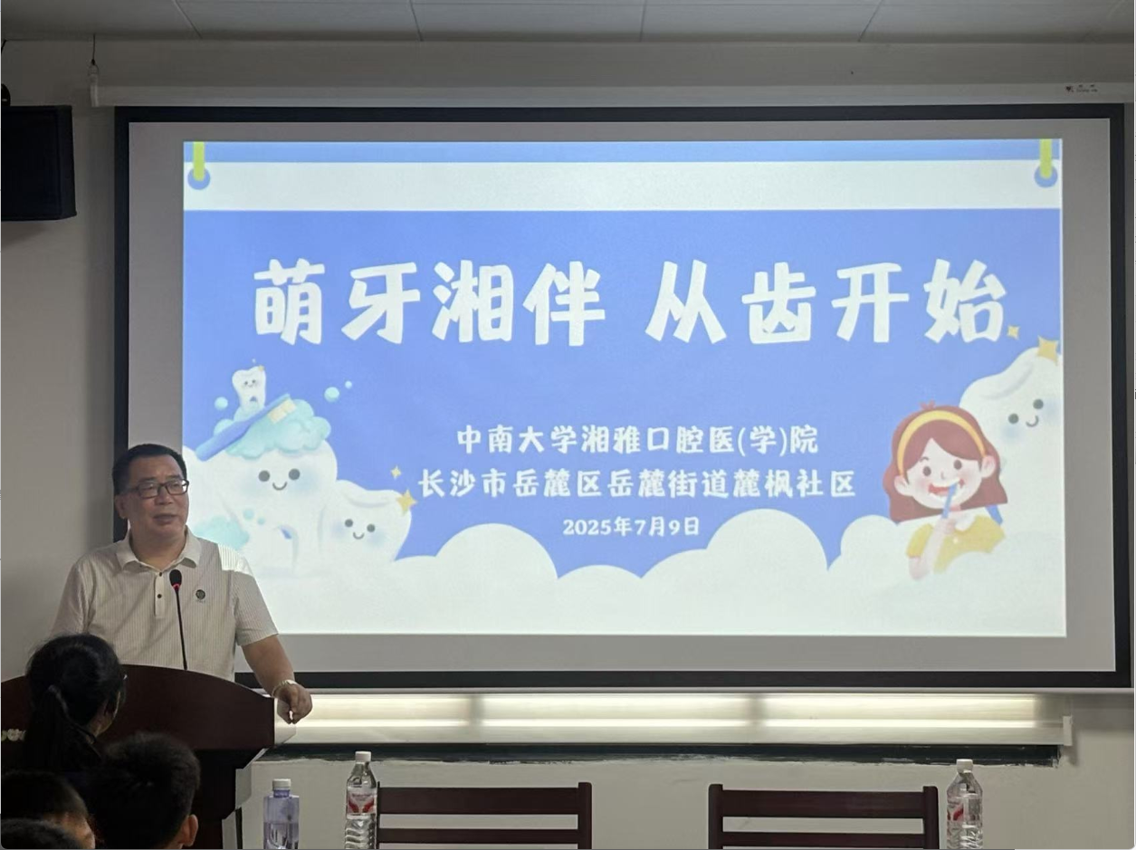 7月9日上午,yl6809永利湘雅口腔医学院“益口吐司”实践团在麓枫社区公共服务中心举办启动仪式。本次实践活动以“萌牙湘伴,从齿开始”为主题,旨在通过专业宣讲与实践服务,提升儿童口腔健康意识。yl6809永利湘雅口腔医学院口腔预防医学教研室主任、院关工委常务副主任李奉华出席活动并致辞。